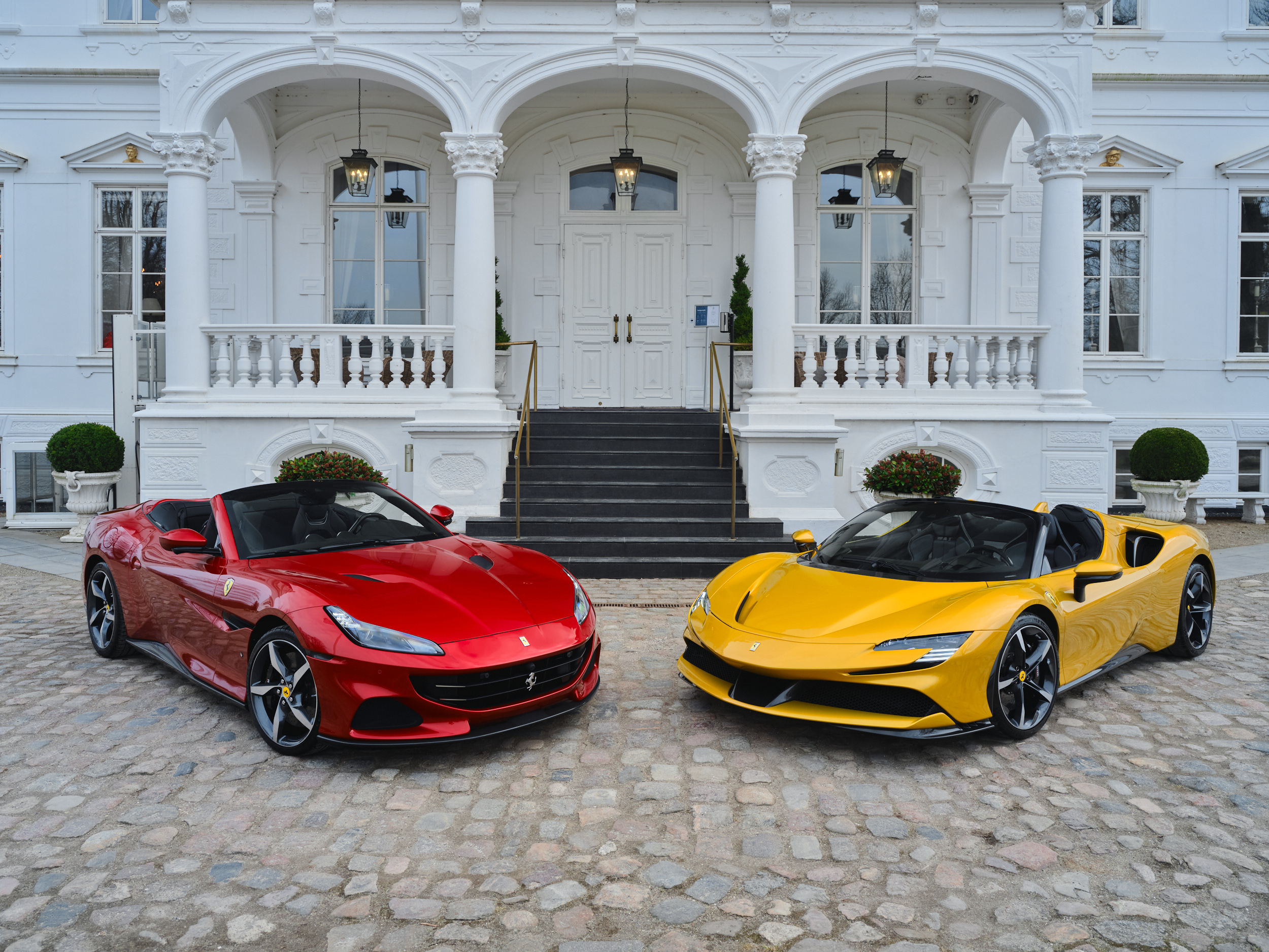 Det nuværende modelprogram tæller Ferrari Roma, Ferrari Roma Spider, Ferrari SF90 Stradale, Ferrari SF90 Spider, Ferrari Portofino M, Ferrari 812 GTS, Ferrari 296 GTB, Ferrari 296 GTS og Ferrari Purosangue.